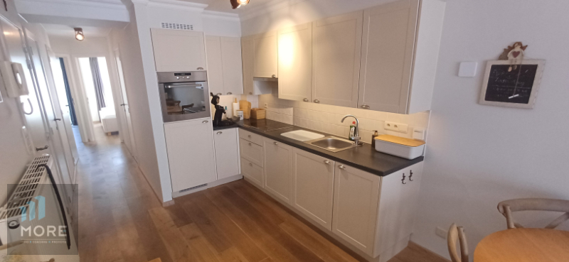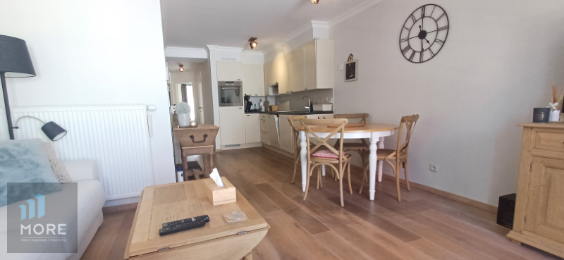 Gezellig 2-slaapkamerappartement uitgevend op een terras met zon tot 's avonds laat... Te huur als tweede verblijf. Indeling: leefruimte met open ingerichte keuken, ruime berging voor was-en droogkast, apart toilet met handwasbakje, ruime badkamer met dubbele lavabo en douche en twee slaapkamers. Op het gelijkvloers is er nog een gemeenschappelijke berging en 2 fietsenhaken voorzien. Forfait €65/maand voor gemeenschappelijke kosten.