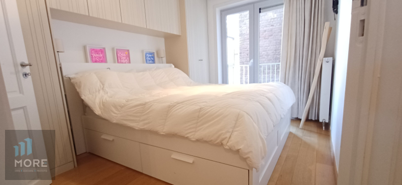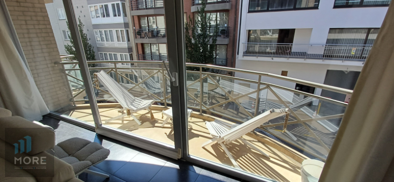 Stijlvol 2-slaapkamerappartement gelegen tussen de Kustlaan en de Dumortierlaan, hartje Knokke. Indeling: woonkamer, balkon aan de straatzijde, ingerichte keuken, nachthal met berging en afzonderlijk toilet, tweeslaapkamers - uitgevend op een balkonnetje aan de achterzijde - met elk hun ensuite douchekamer of badkamer.
